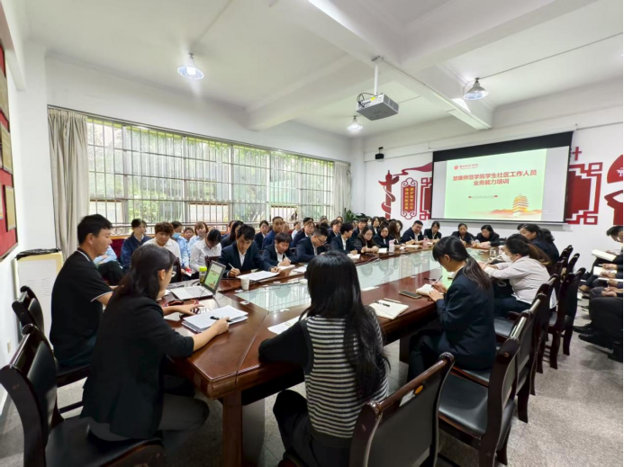 会议对新学期开学的社区重点工作任务进行了安排,进一步强化社区安全责任,守牢安全底线,坚决杜绝安全事故发生;强化社区服务意识,关注学生需求,细化服务举措,及时解决学生在社区生活中遇到的困难与问题;强化社区育人意识,打造社区思政新阵地;强化社区协作配合,加强与各部门、各学院之间的沟通协同和内部协作,共同为学生成长成才提供坚实保障。会议对推进“一站式”学生社区建设工作提质增效进行了培训,对新学期“一站式”学生社区管理工作提出要求。保卫处为学生社区工作人员开展安全专题培训,集体学习《云南省学校安全条例》等上级要求和应对突发事件应急处置方法。