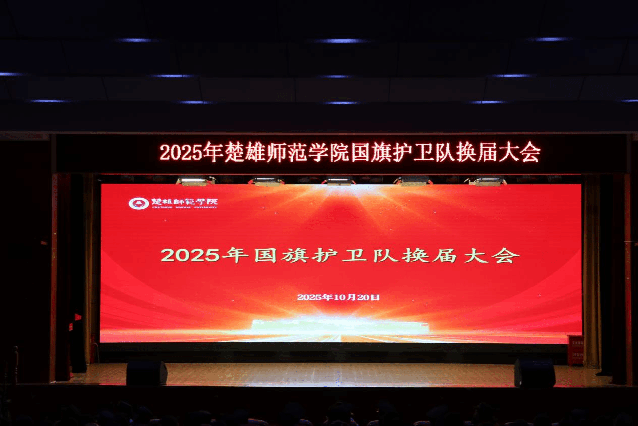 2025年10月20日,我校2025学年国旗护卫队换届交接仪式在雁塔校区上礼堂举行。庄严的国歌奏响,全体肃立注目,新老两届国旗护卫队负责人完成交接,标志着新一届队员正式接过守护国旗的神圣使命。仪式由学校武装部教师、第六届国旗护卫队优秀队员代表及第七届国旗护卫队全体成员参加。