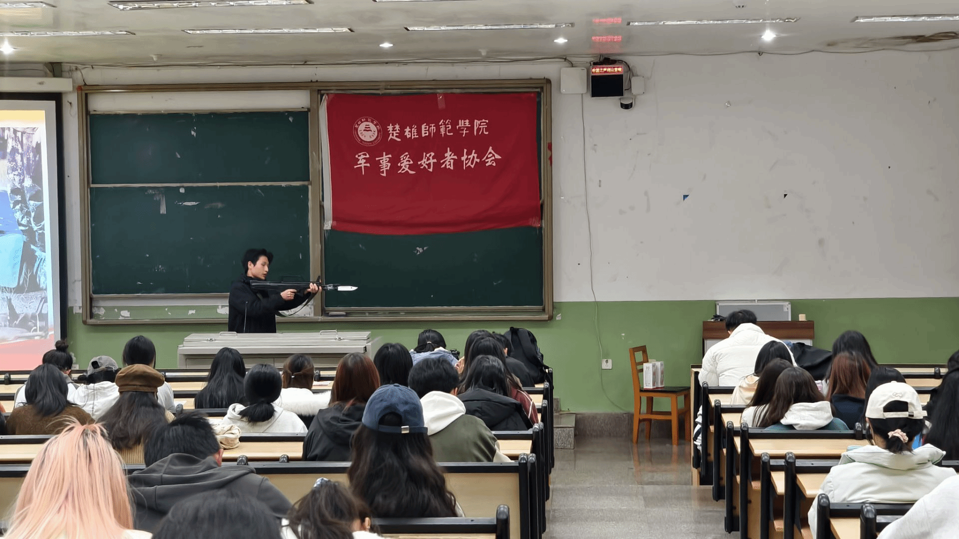 近日,楚雄师范学院花果山校区笃学楼109教室座无虚席,三百余名学子齐聚一堂,共同参加了一场以“钢枪挑起星与月 归来仍是少年郎”为主题的军旅分享暨征兵宣传活动。